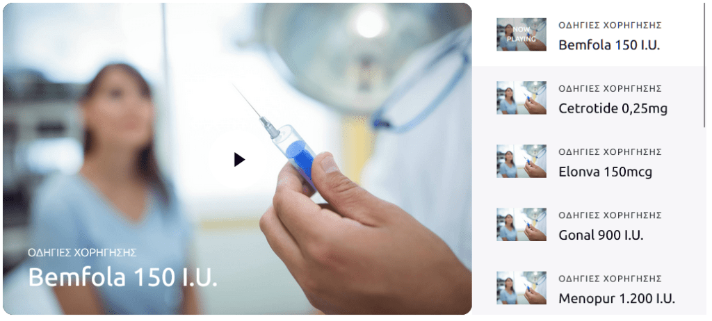 Τα video που ακολουθούν δεν παρέχονται από τις φαρμακευτικές εταιρείες. Οι οδηγίες παρουσιάζονται για ενημερωτικούς σκοπούς. H OVAGENESIS και το ΙΑΣΩ ουδεμία ευθύνη φέρει για την εφαρμογή των οδηγιών από τους ασθενείς. Οι ασθενείς πρέπει να συμβουλεύονται το ιατρικό και νοσηλευτικό προσωπικό της μονάδας για οποιαδήποτε απορία.